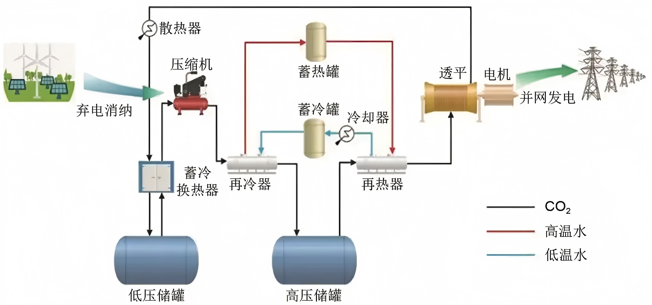储能技术作为解决这些问题的关键,其具备分时能量储存和释放的功能,能够有效实现可再生能源的平滑输出、电网的削峰填谷、用户侧能源管理以及用电负荷的平衡。这不仅是新型电力系统的重要组成部分,也是推动可再生能源规模化利用的关键技术。在新型储能技术领域,二氧化碳储能技术(CAES)作为一种压缩空气储能技术的重要分支,近年来在国内市场上受到了广泛的关注和研究。