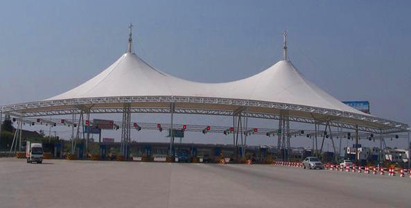 膜结构是用高强度柔性薄膜材料与支撑体系相结合形成具有一定刚度的稳定曲面,能承受一定外荷载的空间结构形式。它广泛用于候车厅、汽车站、停车棚、收费站顶棚。